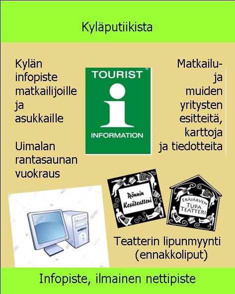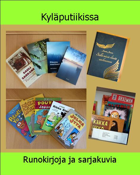 Kyläputiikista löydät mm. kyläläisten valmistamia tuotteita, paikallisia kirjoja, erilaisten yhdistysten varainhankintatuotteita sekä infopisteen matkailijoille ja vakiasukkaille. Tervetuloa tutustumaan!
